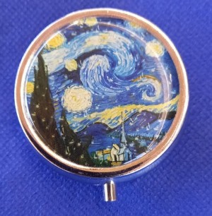 Artistiek als hij was en bleef, schilderde Vincent in die tijd onder andere 'Sterrennacht'. Het is afgebeeld op mijn pillendoosje, dat ik van Marianne kreeg en dat allengs voller raakt en waaruit ik – en ook dàt dankzij drs. P – allengs moeizamer pillen peuter en consumeer. Maar totdat ik aan de Baxter toe ben, smaken – met deze opdruk – de pillen uit dit doosje toch minder bitter.