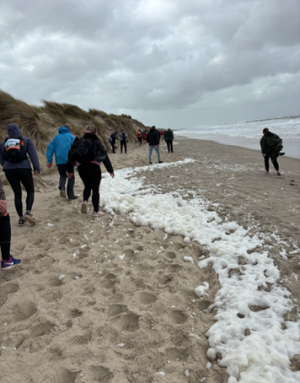 Om 5 uur ging de wekker. Een madopar genomen om op te kunnen starten en de gebruikelijke ochtendmedicatie meegenomen naar het startpunt. Om kwart over 7 startten we de wandeling. Over een zeer winderige stormvloedkering richting Vrouwenpolder waar we het strand op zouden gaan. Daar zag ik heel erg tegenop want op het strand lopen gaat heel moeizaam. En het strand was ook echt verschrikkelijk. Door de storm was het op sommige plekken heel smal en tot 2 keer toe spoelden de golven in mijn schoenen. Op een gegeven moment vroeg mijn dochter of ik niet liever wilde stoppen. Nou erger dan dit bestaat volgens mij niet, dus ik ga door.