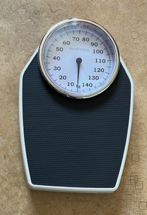 Ik was 'gewoon' snel 'vol' (een bekend parkinsonsymptoom meen ik). Ik eet dus echt minder dan voorheen. Toen de weegschaal eind juli 60 kg aanwees, mailde ik de diëtiste voor een afspraak. Bij een te laag gewicht word ik moe, ik wil wel graag blijven lopen en fietsen.